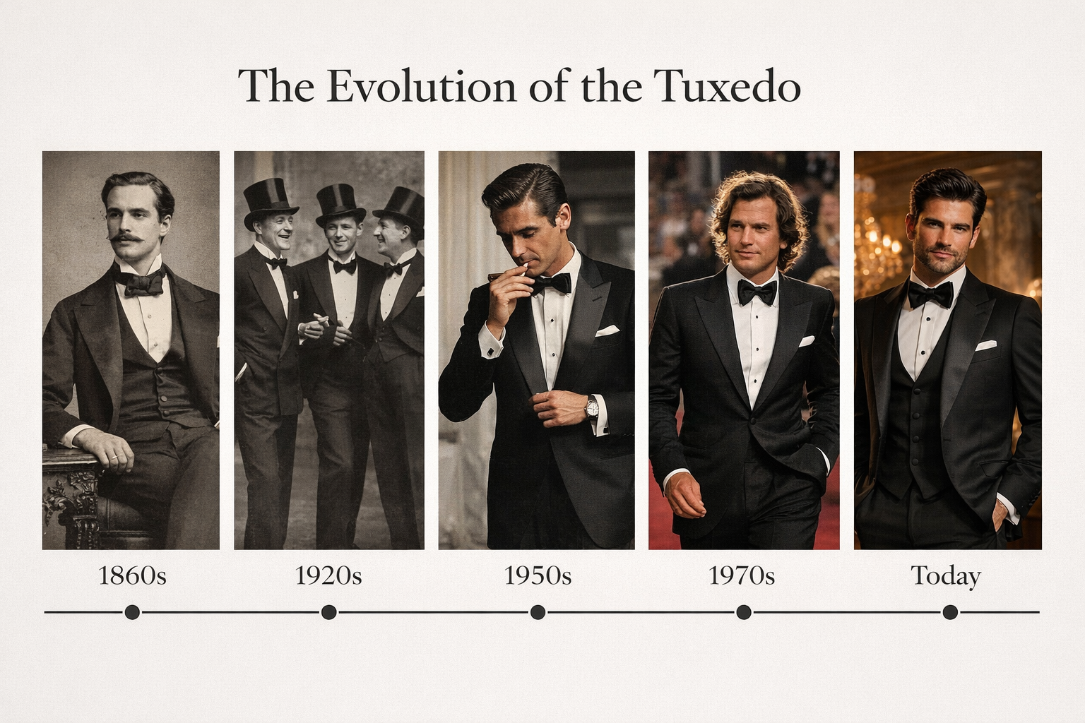 Принц Уэльский (будущий король Эдуард VII) популяризировал смокинг, надев его на неформальный ужин в поместье Sandрingham. С тех пор смокинг стал символом вечерней элегантности и обязательным элементом гардероба для светских мероприятий.